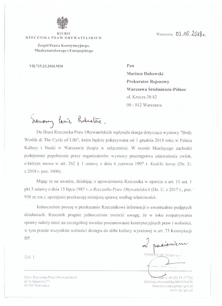 Autorem petycji STOP wystawie ciał pt. “Body Worlds: The Cycle of Life” w Warszawie jest działacz społeczny Mikołaj Jaroszewicz. W petycji domaga się, by zakazać wystawy na podstawie art. 262.: „Znieważenie zwłok, prochów ludzkich lub miejsca spoczynku zmarłego”, podobnie jak miało miejsce to we Francji oraz Izraelu. Zachęcamy do podpisania petycji na stronie: https://www.citizengo.org/pl/
