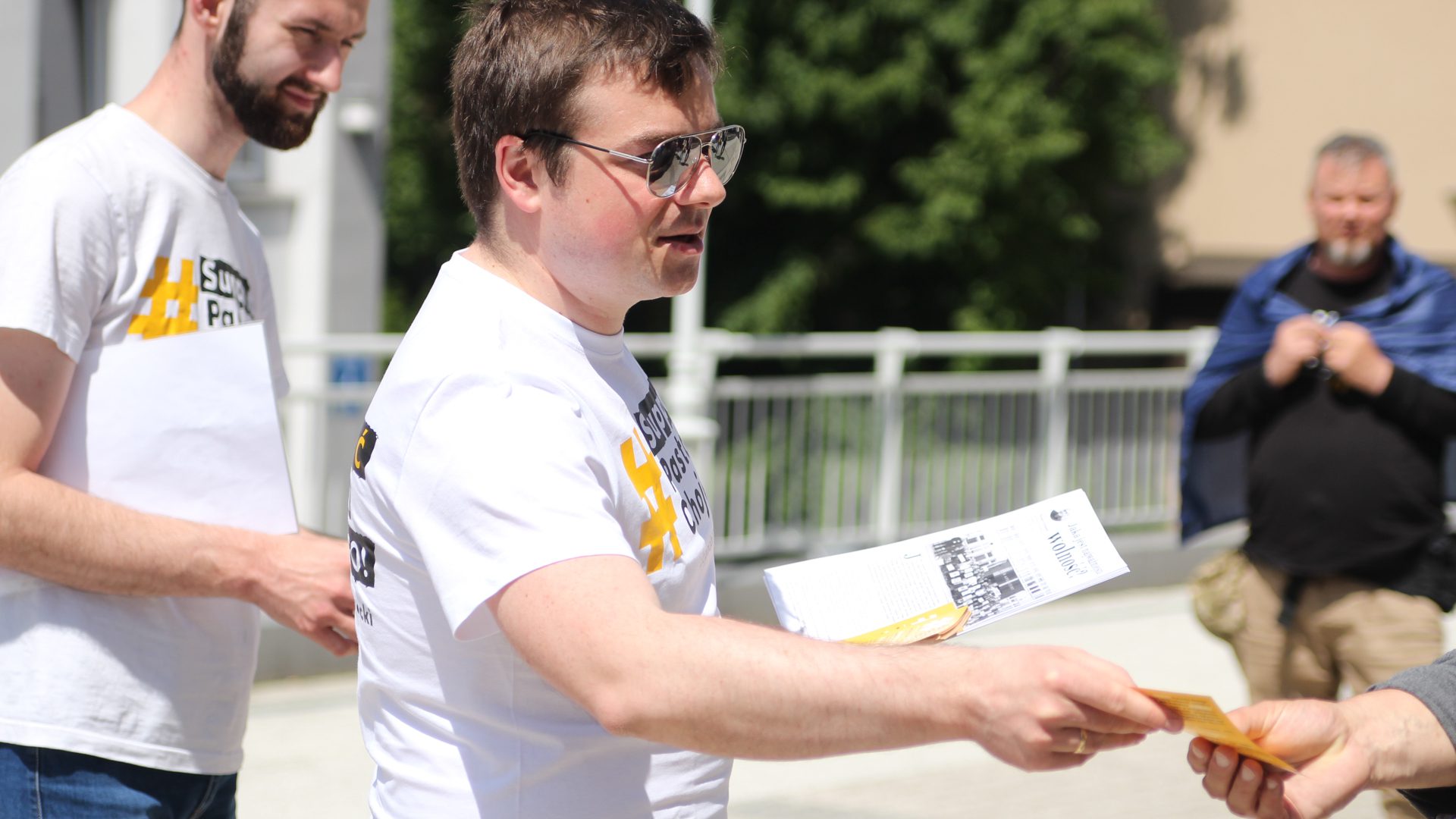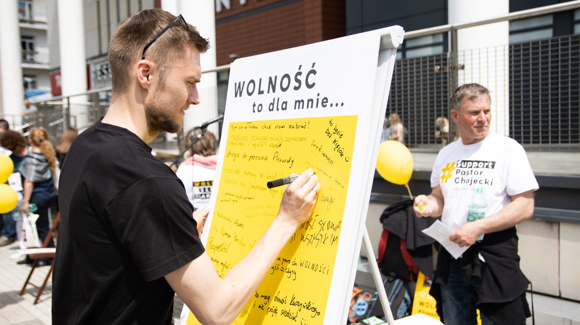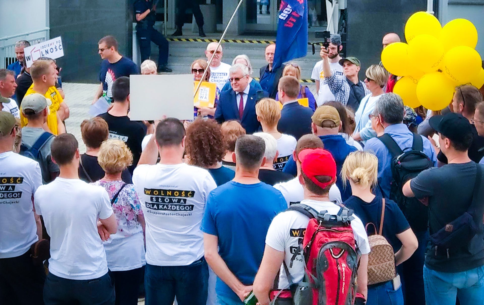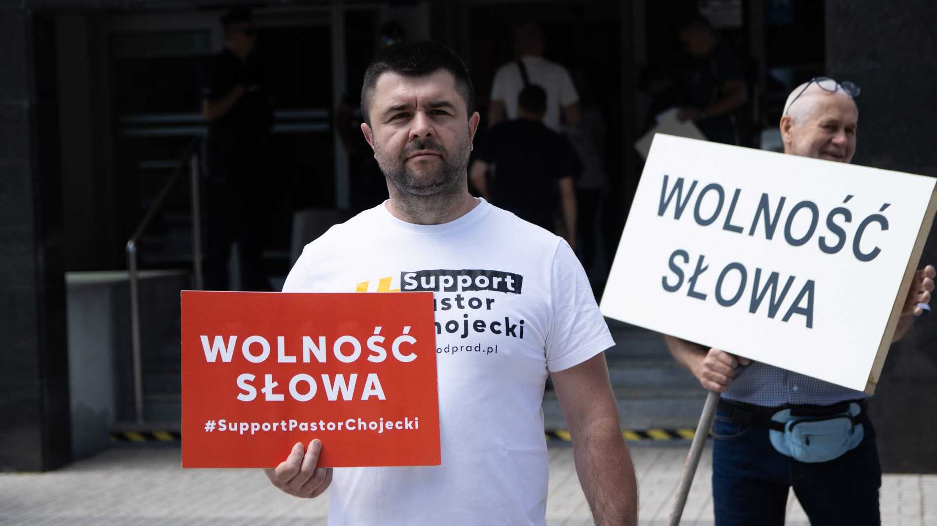 Pastor Chojecki po rozprawie przez chwilę modlił się wraz z tymi, którzy bardzo licznie zgromadzili się, by go wspierać. Wiele osób miało koszulki z napisami wyrażającymi poparcie dla pastora i transparenty o wolności. Było też wspólne śpiewanie i chwalenie Boga. Telewizja Idź Pod Prąd cały czas na żywo relacjonowała wydarzenia sprzed sądu.