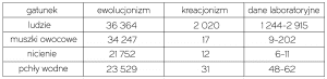 Oczywiście, w nauce jest tak, że pomysłowi uczeni zawsze znajdą sposób, by pogodzić teorię z niezgodnymi z nią wynikami badań empirycznych. Ewolucjoniści słyną z pomysłowości i nie należy się spodziewać, że pod wpływem badań empirycznych uznają się za pokonanych. Na przykład mogą przyjąć, że dawniej procesy ewolucyjne były dużo wolniejsze niż obserwowane dzisiaj w laboratoriach. Ale, po pierwsze, byłoby to niezgodne z zasadą jednostajności przyrody. Po drugie, aby badane gatunki były tak genetycznie podobne, jak są dzisiaj, i były tak stare, jak twierdzą ewolucjoniści, musiałyby mutować zaledwie raz na każde 21-36 tysięcy lat. Pokazuje to poniższa tabela, w której podano średnią liczbę lat, jakie upływałyby pomiędzy pojedynczymi mutacjami wg ewolucjonizmu i według kreacjonizmu w porównaniu z danymi faktycznymi. Widać w niej, że ujęcie biblijne góruje nad ujęciem ewolucyjnym.