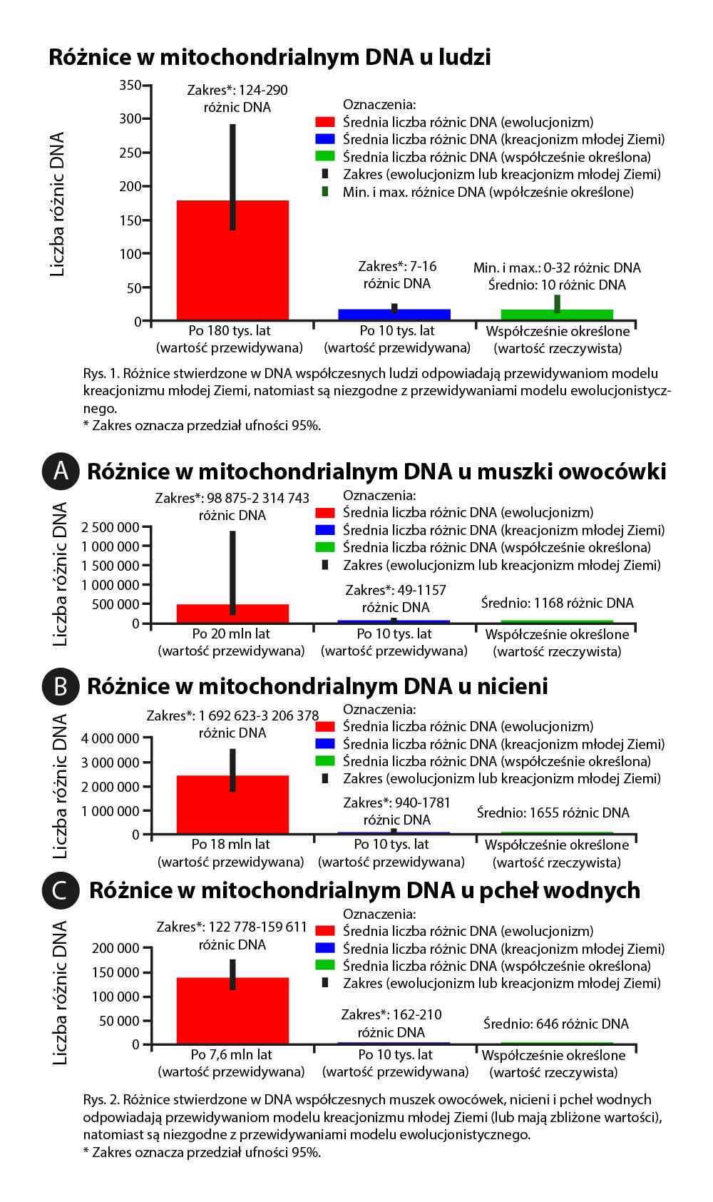 (Źródło: Nathaniel T. Jeanson, Ph.D., „New Genetic-Clock Research Challenges Millions of Years”, Acts & Facts 2014, vol. 43, no. 4, s. 5-8, http://tiny.pl/gpdgd.)