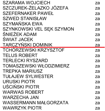 Jednak wcześniej poseł Tarczyński nie był tak krytyczny wobec Czarzastego, który mówił podobne rzeczy. Dwa tygodnie temu Dominik Tarczyński wraz ze 176 innymi posłami Prawa i Sprawiedliwości zagłosował za kandydaturą Czarzastego na wicemarszałka Sejmu.